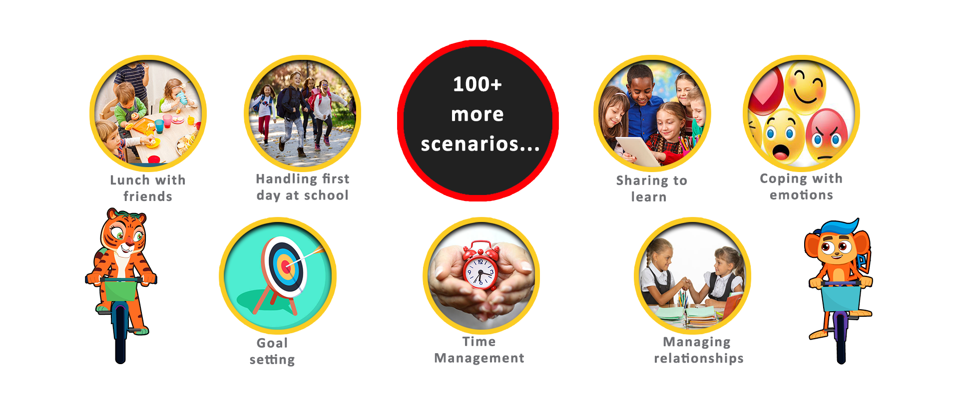 We have recreated real-life scenarios with fantastic animation in a school setting to simulate social and emotional learning experiences and build SEL pathways for learners.