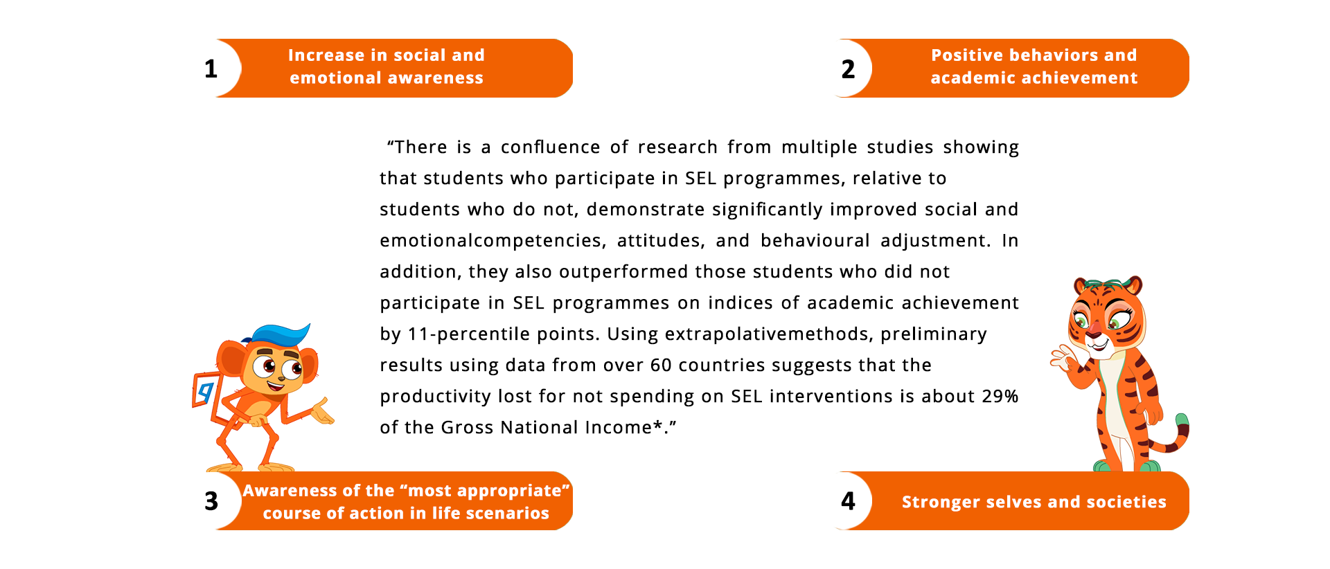 We have developed the SEL, based on guidelines and recommendations from industry-relevant organizations – WHO, UNESCO, and developed a framework with caselets and puzzles to assess SEL competencies as recommended by CASEL.